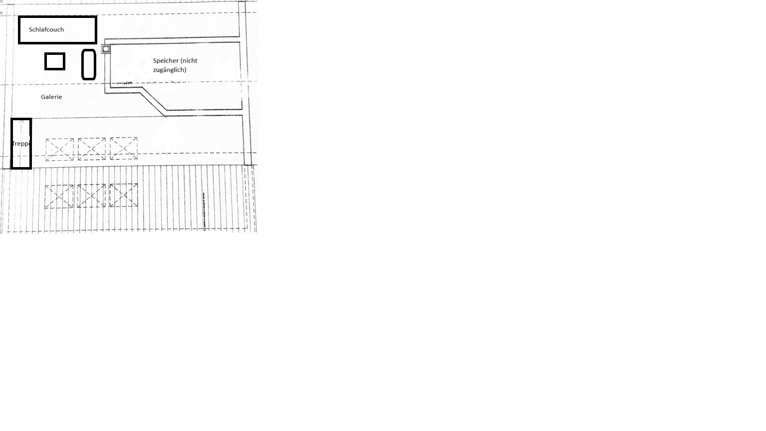 Die Galerie ist über eine Treppe aus dem Wohnzimmer erreichbar. Hier befindet sich ein ausklappbares Schlafsofa (als 3te Schlafmöglichkeit) direkt unter dem großen Sternenblick - Dachfenster.